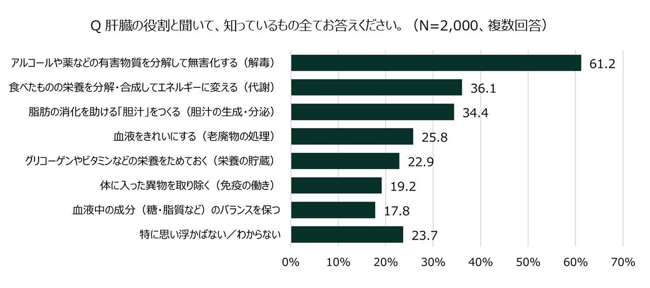 2. 肝臓の役割は「アルコール分解」のイメージに留まる / 肝臓の役割の認知不足が示唆される結果に