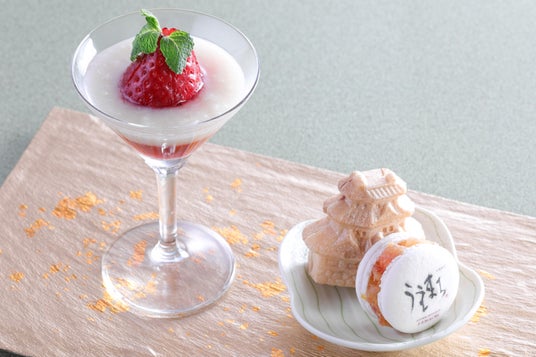 甘酒といちごのゼリー、大阪城もなか(粒餡クリームチーズ)、たまご味噌マカロン