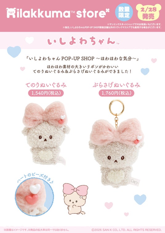 サンエックス株式会社(本社:東京都千代田区、以下サンエックス)は、2026年2月28日(土)~3月15日(日)の期間、全国のリラックマストア9店舗にて『いしよわちゃんPOP-UP SHOP ~ほわほわな気分~』を開催することをお知らせします。ほわほわなリボンが主役の限定ぬいぐるみや、3月発売『推しだいすき』テーマの先行発売、ノベルティのプレゼントをご用意しています。