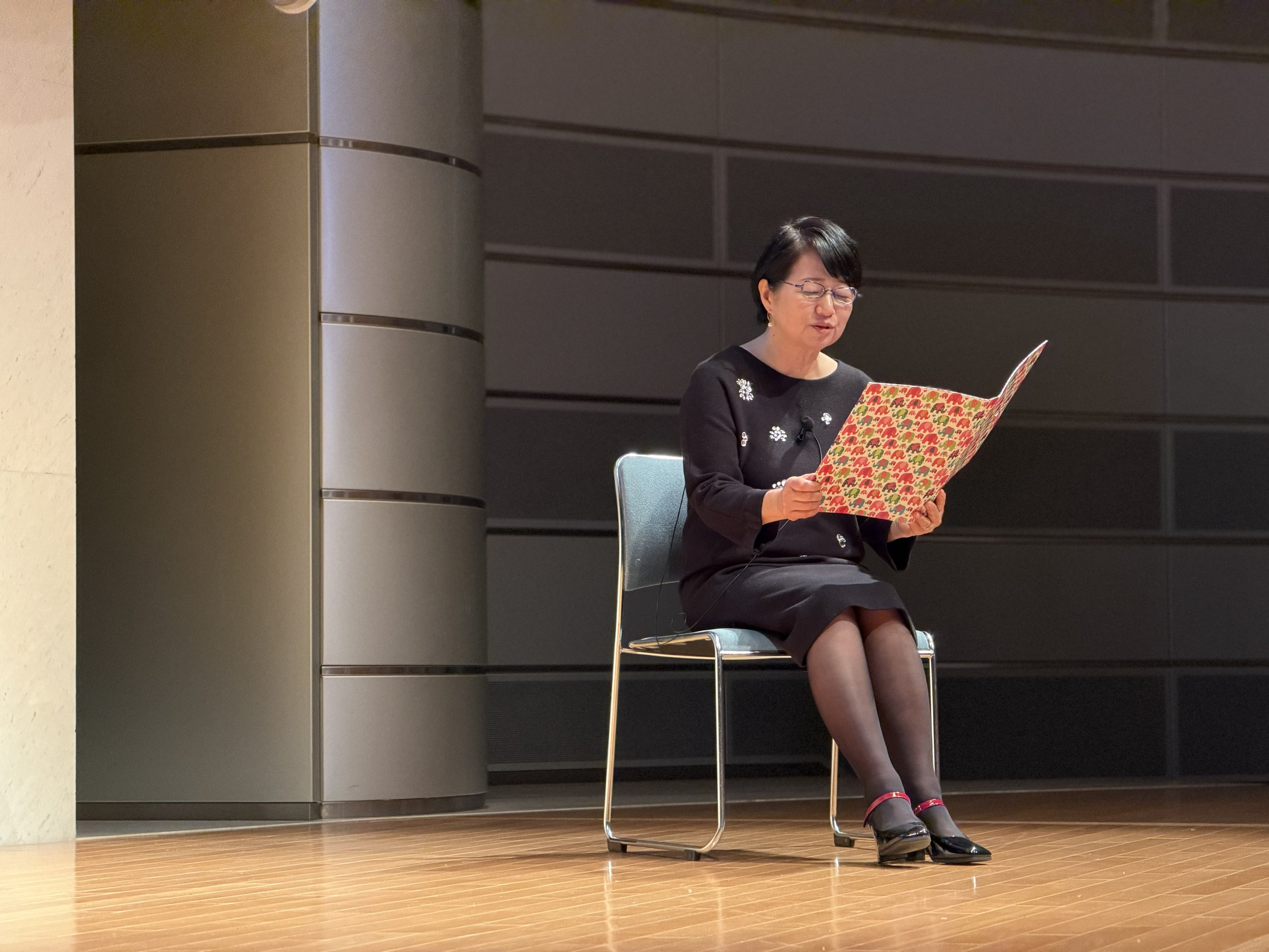 朗読を務めた柴田が声に出すと、会場は静まり返り、涙を拭う姿が多く見られました。子どもたちも真剣な表情で耳を傾けていた姿が印象的でした。