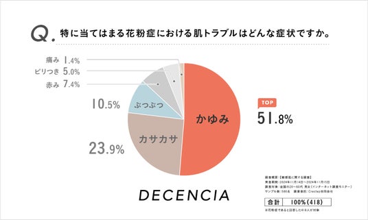 ■花粉症による肌トラブル。最多は「かゆみ」「カサカサ」
