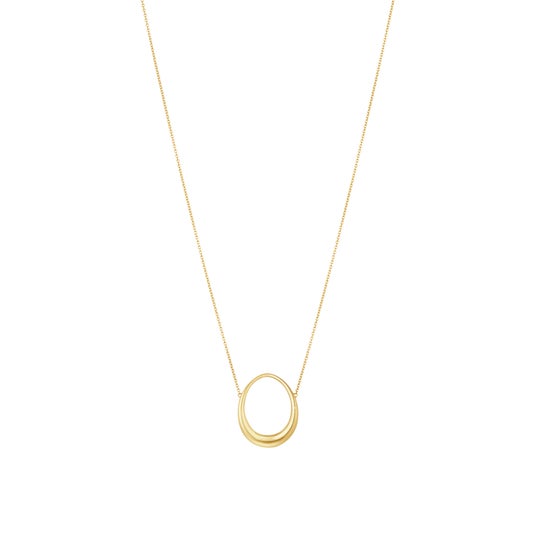 「マーシー」コレクションには、新たにペンダントが加わります。シリーズを象徴する有機的でふっくらとしたリングのフォルムを、細いコットンコードに吊るしたペンダントとして再構築しました。