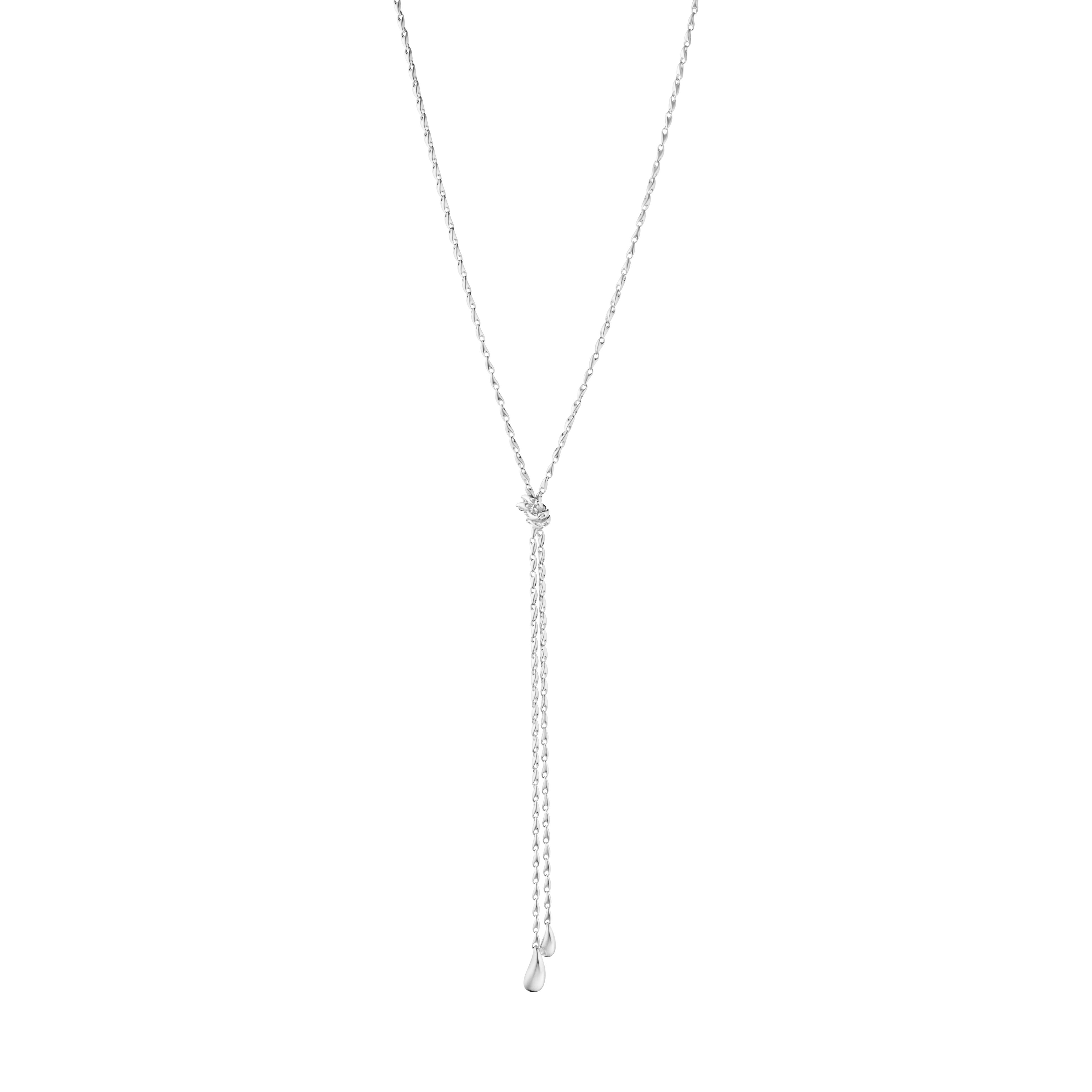 「ジョージ ジェンセン リフレクト」コレクションも拡充し、有機的なフォルムのリンクが連なるソートワールネックレスが登場します。巻いたり、結んだり、さまざまなスタイリングが楽しめる汎用性の高いデザインです。