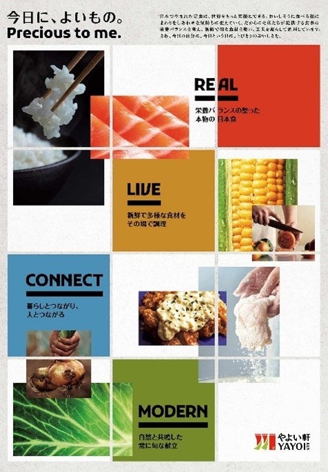 ロゴフォントは、丸みがなくモダンな明朝フォントを使用することで、日本語・アルファベット・シンボルマークとの上質な調和を表現。日本語とアルファベットを組み合わせることで、日本でも海外でも一目で「やよい軒」と認識していただけるようにしました。