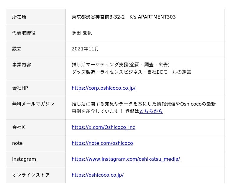 弊社は”推し活”女子をターゲットに、オタク領域でオンラインストア・メディア運営を実施しております。また、企業様向けにオタク企画プロデュースやコンサルティングを行っております。