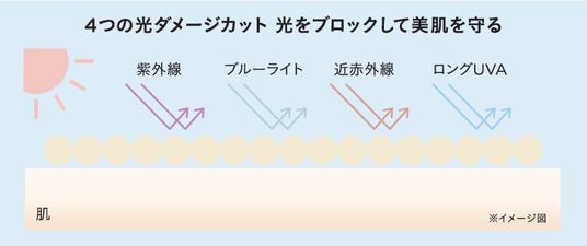 敏感な肌を見つめ、4つの光(紫外線、ブルーライト、近赤外線、ロングUVA)と夏に増えやすい皮脂から肌を守ります。