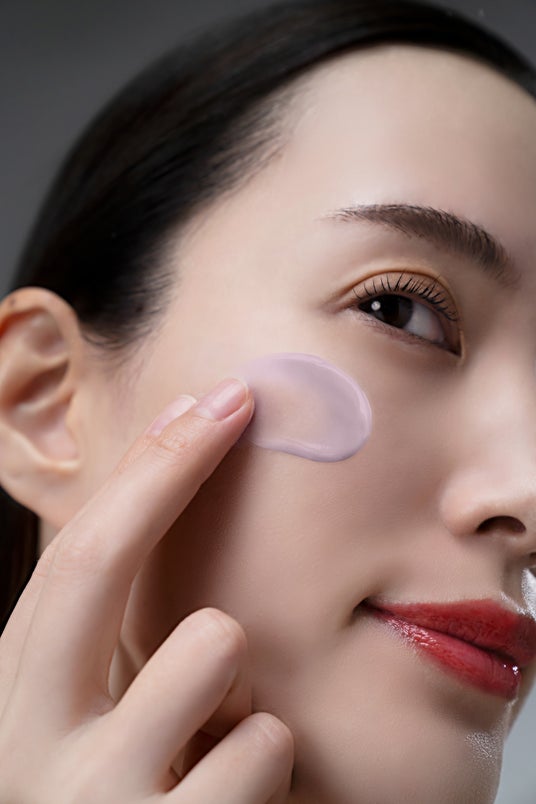 ピンクのやわらかな血色感で、疲れた印象や顔色の悪さを一掃。さらにパープルがくすみや黄みを補正し、肌に澄んだ透明感をプラスします。しわやたるみの影まで光で飛ばし、肌全体をトーンアップ。まるで内側から輝くような、上質な明るさを纏う一色です。