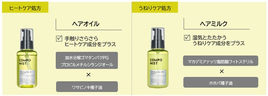 ヘアオイル・ヘアミルクならではの共通ダメージ補修成分&植物オイルをプラス