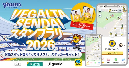 ジオフラ株式会社(本社:東京都千代田区、代表取締役社長 社長執行役員CEO:尾崎 雄一、以下 ジオフラ)は、2026年3月7日、明治安田J2・J3百年構想リーグ 地域リーグラウンド 第5節(ベガルタ仙台 対 湘南ベルマーレ戦)において、明治安田生命保険相互会社(以下、明治安田)との共同企画として、おでかけエンタメアプリ『プラリー』を活用したデジタルスタンプラリー企画「ベガルタ仙台デジタルスタンプラリー by 明治安田」を開催いたします。