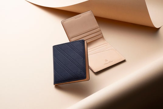 カウレザー 2フォールドウォレットBrooks BrothersのシグネチャーストライプであるBB#1(ナンバーワン)ストライプが型押しされたオリジナルレザーを使用した、二つ折りのウォレット。6枚分のカードスロットと、両側からお札を包み込む仕様の札入れを備えています。コイン入れを省き、ジャケットの内ポケットにもすっきり収まるデザインに仕上げました。鞣しからグレージング加工、縫製に至るまでの製造工程は日本国内の工房にて、高い技術を有する熟練の職人が手掛けています。