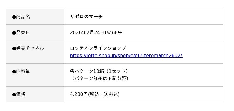 株式会社ロッテ(東京都新宿区、代表取締役社長執行役員:中島英樹)は2月24日(火)正午に、ロッテオンラインショップ限定で「オリジナルコアラのマーチ」シリーズから、TVアニメ『Re:ゼロから始める異世界生活』と『コアラのマーチ』のコアラたちがコラボした「リゼロのマーチ」を販売します。作品のキャラクターたちが、大人気チョコ菓子のコアラのマーチに大変身したデザインの商品で、ここだけでしか手に入らないオリジナルクリアファイルの特典付きです。ロッテオンラインショップにて、期間限定・受注生産となります。ぜひ詳細をご覧ください!