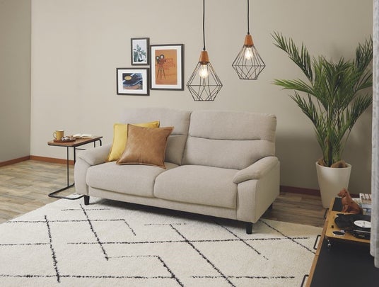 背もたれ中央が分割された構造で、腰にあたる部分にはボリュームたっぷり。長時間でも快適に座れ、ひじ掛けを枕にして横になれるため、くつろぎ時間やスマートフォン、テレビ視聴時にもぴったりです。
