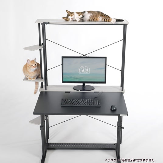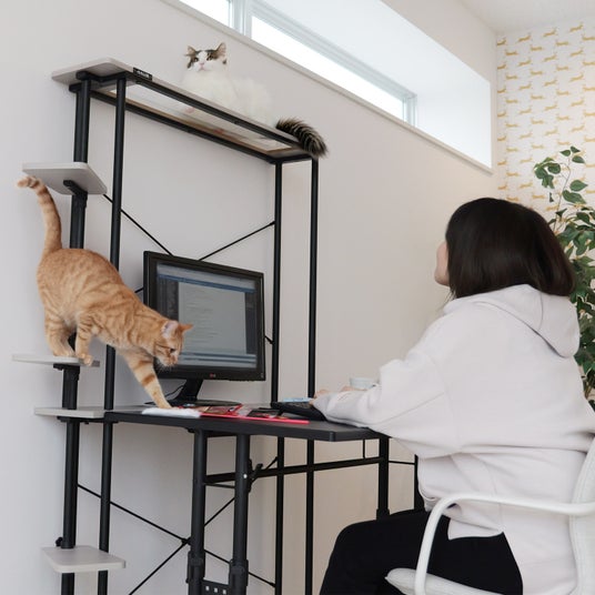 デスク単品での使用はもちろん、今回の景品である『猫タワーラック』と連結して、レイアウトを拡張しても◎。”猫ちゃんが楽しめる&くつろげるエリア”をさらに拡大して、理想の「猫と暮らす部屋」を構築しましょう!