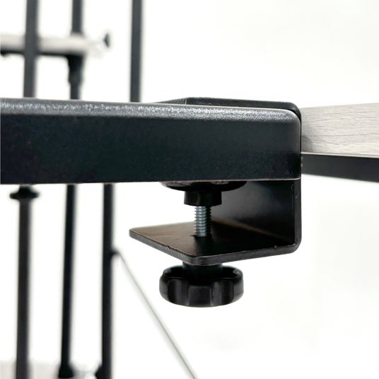 今つかっている机にクランプで固定するだけの簡単設置で、高いところが大好き&飼い主を常に監視していたい猫も満足、ネコハラされてもいいから常に近くに猫がいてほしい&あわよくばかわいい肉球を見たい飼い主も満足…な、モニターラック型キャットタワーです。