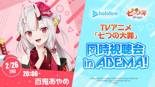 ◆「ホロライブ」に所属している人気VTuberの「百鬼あやめ」さんによる、TVアニメ「七つの大罪」の同時視聴会を2月26日(木) 20時より開催!
