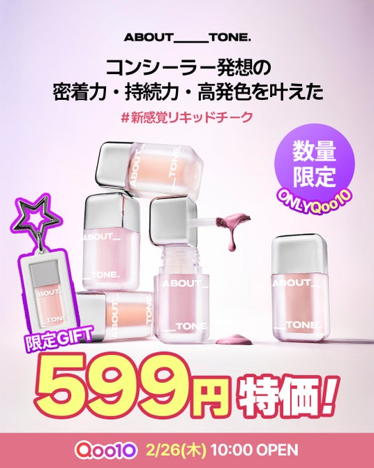 ABOUT___TONE.(アバウトトーン)「スキンレイヤーフィットチーク」全16色が2月26日(木)よりアバウトトーン公式Qoo10にて発売を開始いたします。また、発売を記念して2月26日(木)10時より数量限定599円大特価セールを開催いたします。
