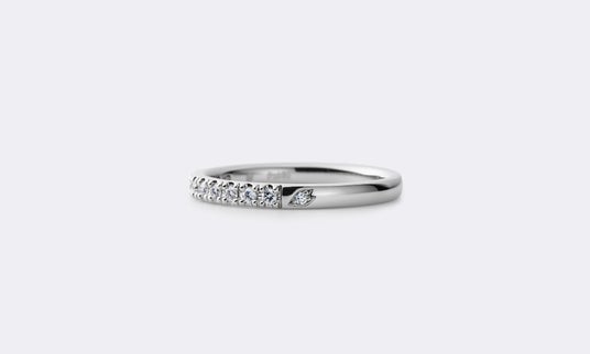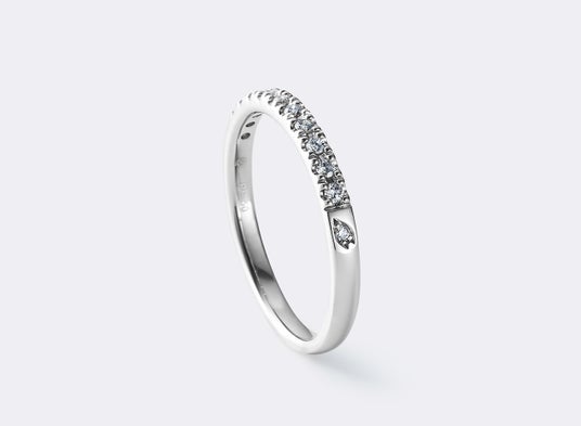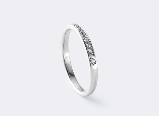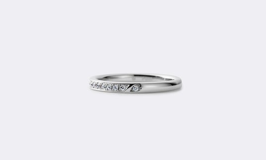 エタニティリングの中指側にさりげなく、ひらりと舞う、ひとひらの花びらを施しています。