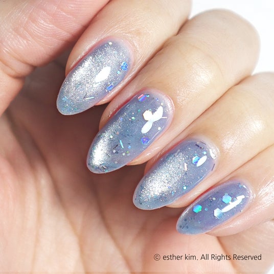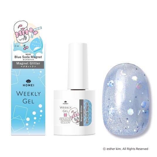 MG36 Blue Soda Magnet はじけるラムネ澄んだ薄色ブルーに、炭酸の泡のようなホログラムラメを閉じ込めたマグネット。シュワっと弾ける輝きが、夏のはじまりのラムネを思わせる爽やかで涼しげな指先に。