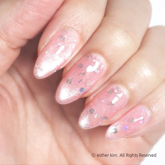 MG35 Pink Soda Magnet 恋のしずく淡いピンクに、大粒ホログラムラメがきらめくマグネットカラー。ソーダの泡のように弾けるホログラムは、グラスの中に落ちた恋のしずくをイメージ。光を集めるたび、ふわりと甘さがにじみます。