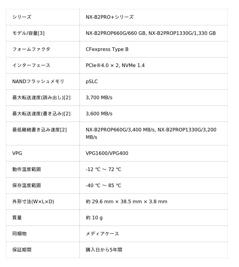 ■ CFexpress 4.0 Type Bメモリーカード:NX-B2PRO+シリーズ