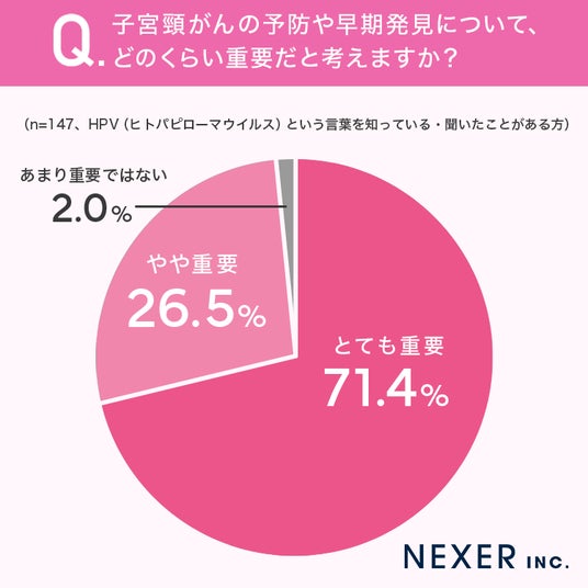 続いて、子宮頸がんの予防や早期発見について、どのくらい重要だと考えているかを聞いてみました。