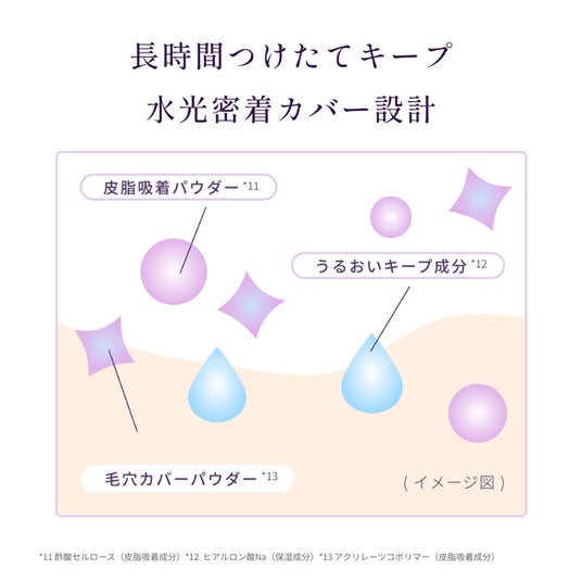 毛穴カバー、崩れ・テカリ防止「水光密着カバー設計」