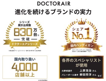 2013年に誕生したトータルボディケアブランド『ドクターエア』では、Health Care Innovation(ヘルスケアイノベーション)という考えのもと、身体と心をメンテナンスし「健康に寄り添う」ことで、多くの人に毎日をもっと豊かに過ごしていただくことを目指し、カテゴリーを問わない新発想の製品・サービスを生み出し続けていきます。