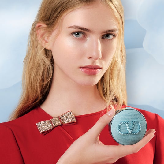 「GO クッション グロウ シエル バロック」はスカイブルーのカラーとバロック調のテキスタイルを掛け合わせた“ニュースタルジア“なムードのパッケージ。「スパイク ヴァレンティノ シエル バロック」は、ヴァレンティノのバッグから着想を得た、メタリックブルーのスタッズを全面にあしらった印象的なパッケージで、それぞれ単なるメイクアイテムではなく、”クチュール アクセサリー”として持ち運びのできるアイテムです。
