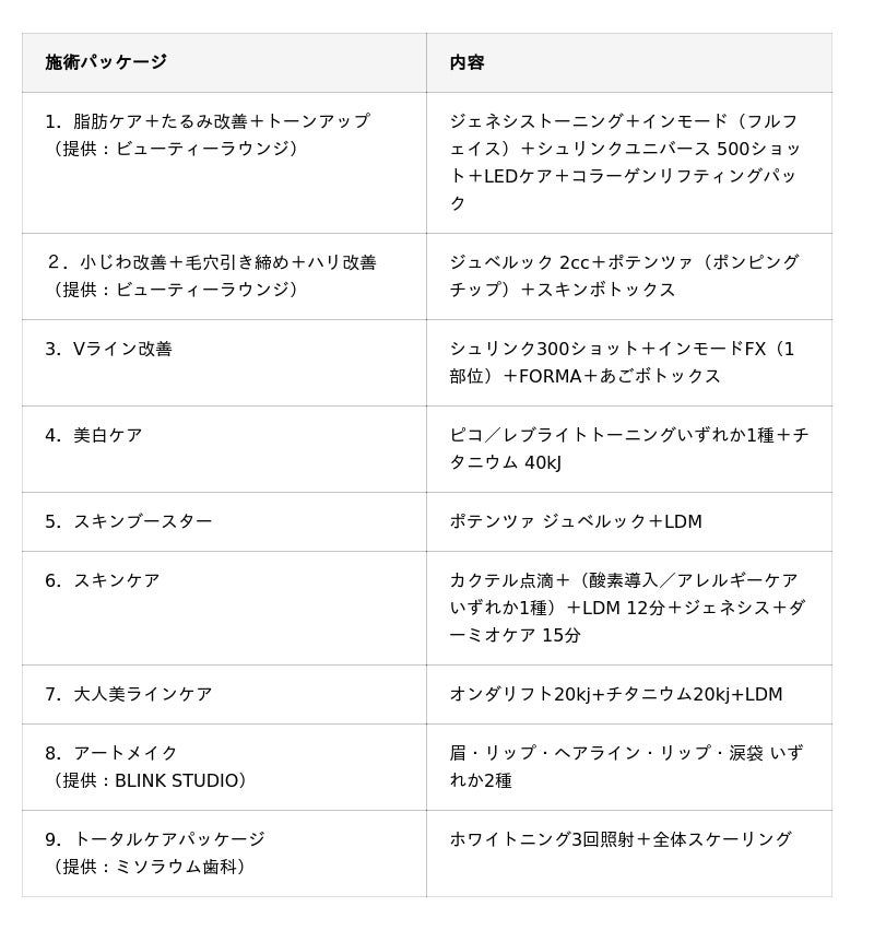 ※3~7には、「ほくろ除去2か所」or「しわボトックス1部位(眉間・目元・口角など)」が無料でつきます。/提供:リベリ