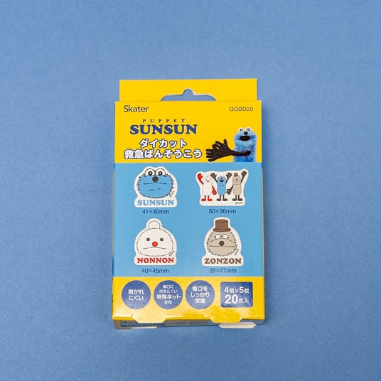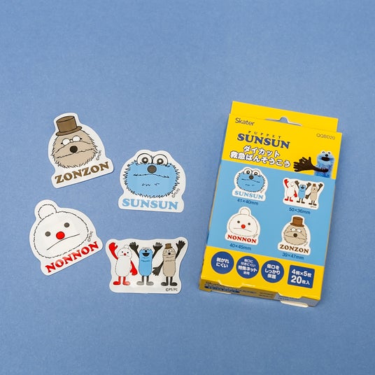 「スンスン」「ノンノン」「ゾンゾン」の顔や、みんなで手を挙げているポーズなど、全4柄が入った絆創膏セットです。