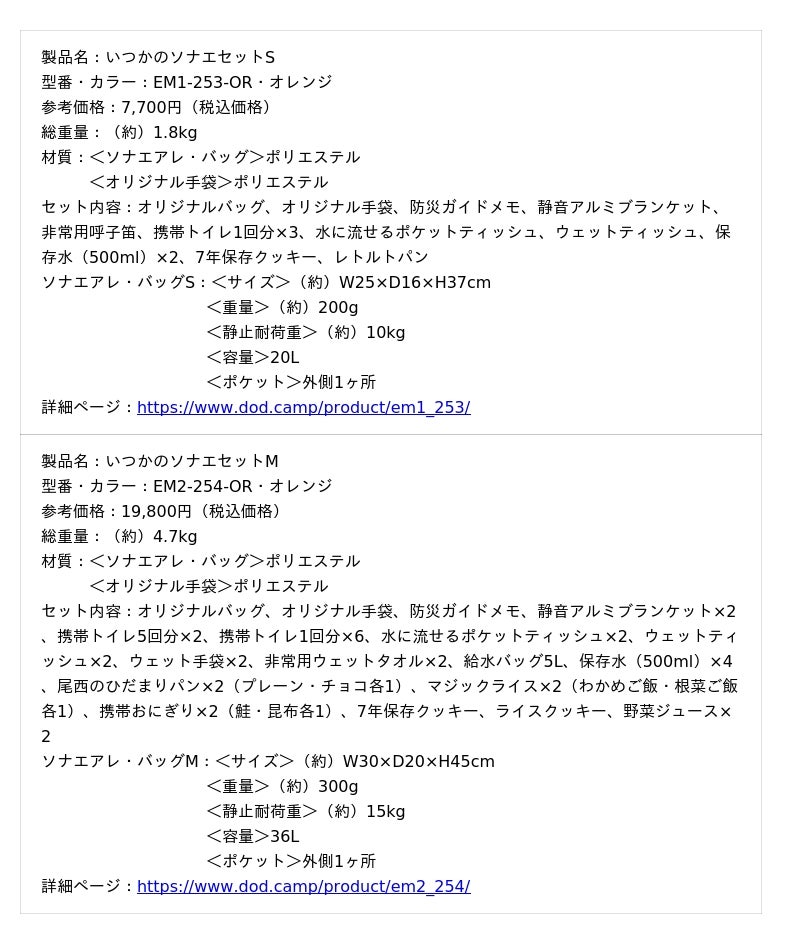 水やちょっとした食料はなんとなく準備したものの、本格的な防災セットの購入はまさに「いつか準備しよう」と先延ばしにしてしまっていたので、「いつかのソナエセット」でしっかり準備したいと思います。