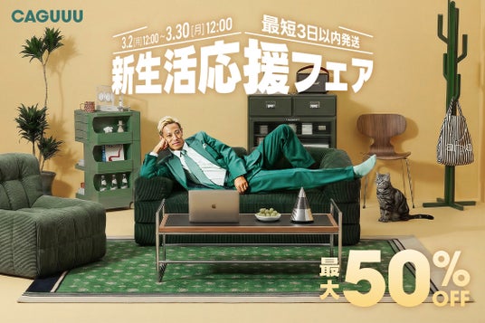 この度、CAGUUU株式会社(本社:東京都港区、代表取締役社長:中村勇輝)は、欲しい家具に出会える家具ブランド「CAGUUU(カグー)」にて、3/2(月)から3/30(月)まで「新生活応援フェア第二弾」を開催いたします。