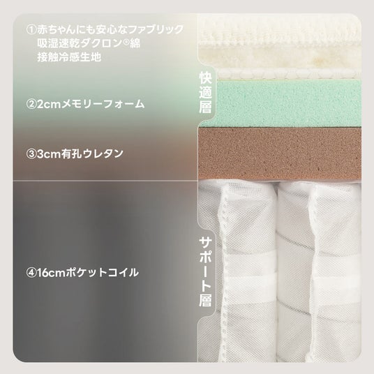 リバーシブル仕様で季節に合わせて使い分けでき、夏は通気性よく、冬はしっかりとした寝心地を実現。独立ポケットコイルが体のラインに沿って体圧を分散し、寝返りを打っても揺れにくく、安定した眠りをサポートします。