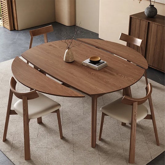 伸縮式ダイニングテーブル。必要に応じてサイズを調整でき、日常から来客時まで柔軟に対応します。FAS級ホワイトアッシュ無垢材と高光沢セラミック天板を組み合わせ、上質感と耐久性を両立。安定感のある木脚構造で、長く安心して使える設計です。