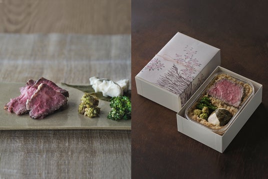 京丹後生まれのお米から仕立てた特製の米味噌糀に、蕗のとうや菜の花、京都牛のローストビーフを重ねました。