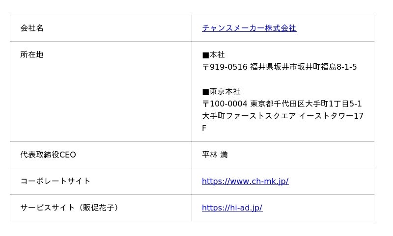 セールスプロモーション支援サービスを展開するチャンスメーカー株式会社