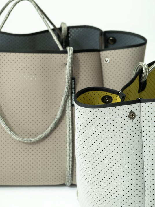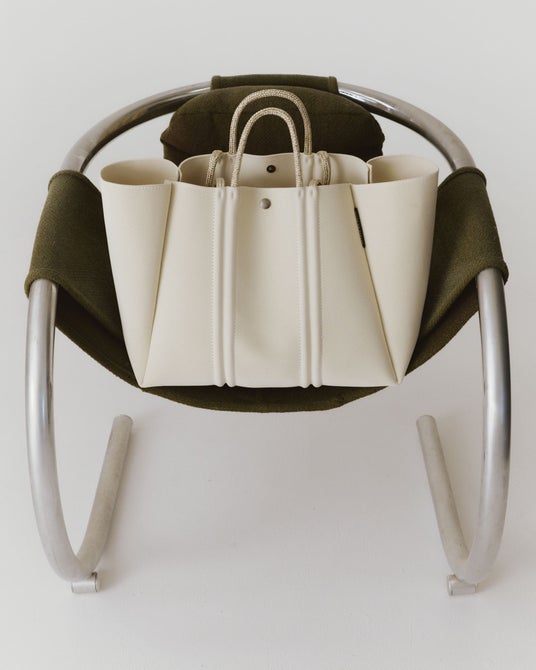 今回は、洗練された佇まいを引き立てる特別なカラーパレットをまとってラインナップ。外側はミニマルに、内側にはさりげない彩りを。バッグを開けた瞬間に心が弾むような配色を施しました。肩掛けとハンドキャリーの両方に対応するダブルハンドル仕様により、シーンやスタイルに合わせた持ち方が可能に。軽量で柔らかなネオプレン素材の心地よさも相まって、日常のさまざまなシーンに寄り添う新作です。