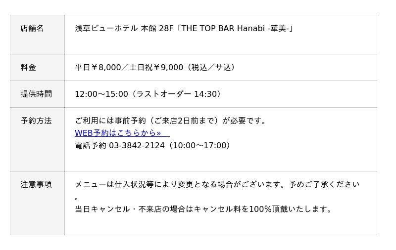 浅草ビューホテル(所在地:東京都台東区/総支配人:佐藤 和彦)では、28階バーラウンジ「THE TOP BAR Hanabi -華美-」にて、スカイビューアフタヌーンティーの春季限定メニュー「スプリングコレクション」を販売いたします。