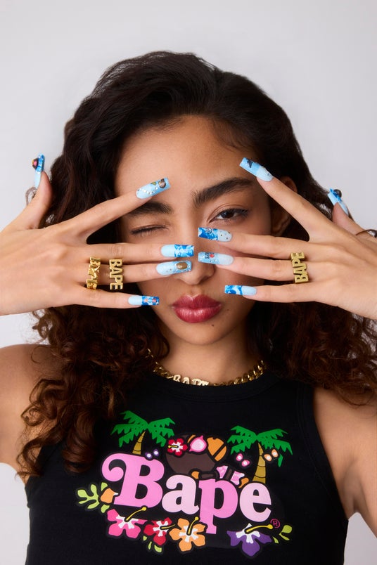 なかでも注目は、「BABY LISA NAIL SEAL SET 」(ブルー/ピンク)。BAPE(R) CAMO柄のネイルポリッシュとネイルチップをセットにし、セルフアレンジをより自由にアップデート。