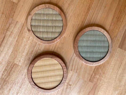 コースターとして家に持って帰ることで、畳のないお家でも身近に畳を感じて癒されていただけると嬉しいです。実際にイグサの香りは森林浴と同じ効果があると言われています。
