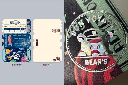 「EARTH」「GALAXY」の二つの世界観で、それそれ異なる箔押しが施されたアイテムには、様々な箔色、テクスチャ加工が施されています。