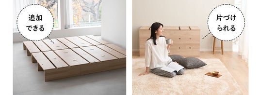 健康家具ブランドEMOOR(エムール)から、つなげて、動かして、広げられる。引っ越しや模様替えの多い都市生活に寄り添う、新発想のパレットタイプベッドが新登場。