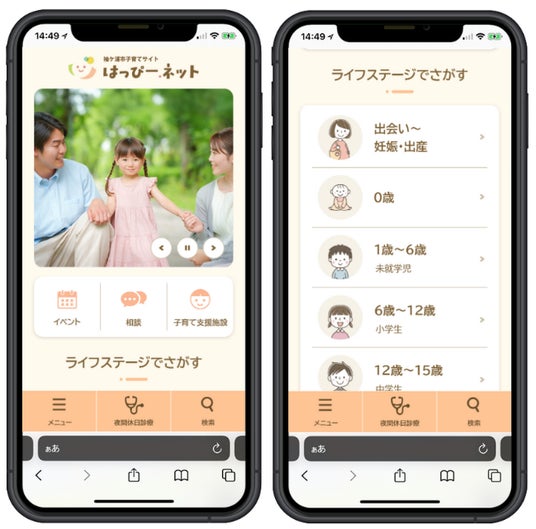 「出会い~妊娠・出産」「1歳~6歳」など、ライフステージ別に情報を整理。今、自分に必要な支援やサービスが一目で分かるようになり、忙しい子育て世代をデジタルでサポートします。