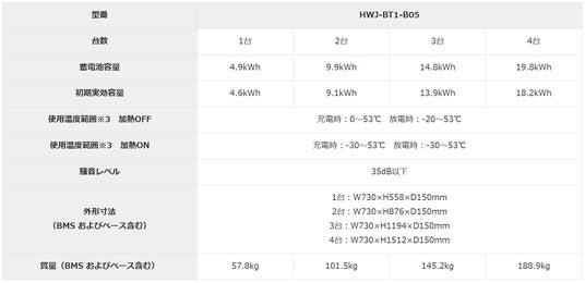 (1)蓄電池容量は4.9、9.9、14.8、19.8kWhの少量から大容量まで対応