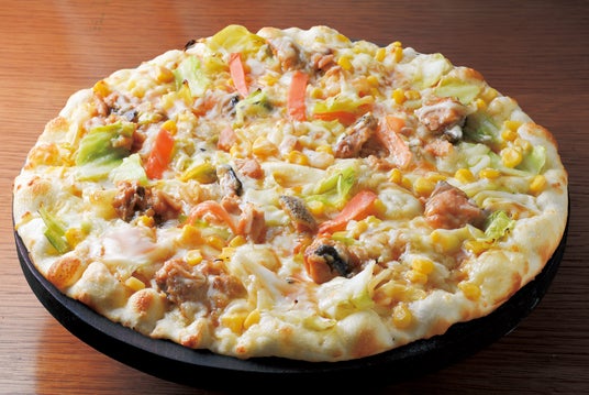 鮭のちゃんちゃん焼き風ピザマヨネーズベースの生地に、味噌ダレで和えた鮭と野菜をのせ、チーズをトッピングして焼き上げました。北海道の郷土料理「ちゃんちゃん焼き」のイメージを、シェーキーズらしくピザで表現した一品です。