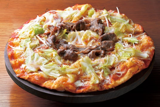 成吉思汗(ジンギスカン)ピザトマトベースの生地にチーズと野菜、オーブンで焼いたラム肉、もやしをトッピングしました。ラム肉を中心からドーナツ状に配置することで、ジンギスカン鍋をイメージした見た目と、ラム肉の旨みを楽しめるピザに仕上げています。