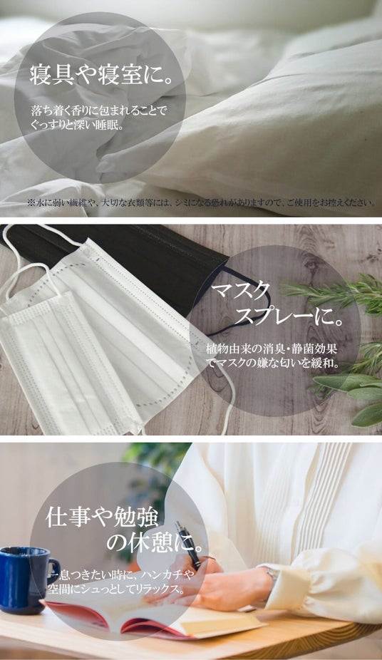 『空(そら)』『杜(もり)』『城(しろ)』の三種のアロマスプレーを新たに販売開始。