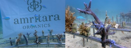 アムリターラでは、製品づくりにおける環境配慮にとどまらず、実際の海洋環境の再生にも継続的に関わる取り組みとして、「アクアプラネット」が行う、沖縄のサンゴ再生活動「サンゴ畑」への支援を行っています。本プロジェクトでは、サンゴの苗を海中に植え付け、産卵・成長を目指しながら生態系の回復を促す活動が進められています。