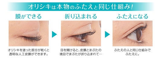 「オリシキ アイリッドスキンフィルム」(以下、「オリシキ」)は、まぶたに塗って乾かすだけで透明な人工皮膜を形成し、自然なふたえをつくる“非接着タイプ”のふたえコスメです。2018年の発売以来、口コミサイトやベストコスメアワードで数多くの1位を獲得。シリーズ累計販売数は500万個(※1)を突破し、多くの方に支持されています。