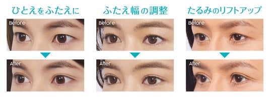 ひとえまぶたにはもちろん、奥二重の幅を広げたり、左右非対称なふたえ幅の調整、たるみが気になるまぶたのリフトアップにも使用可能。メイクの上から使用できるので、アイメイクを自由に楽しむことができます。
